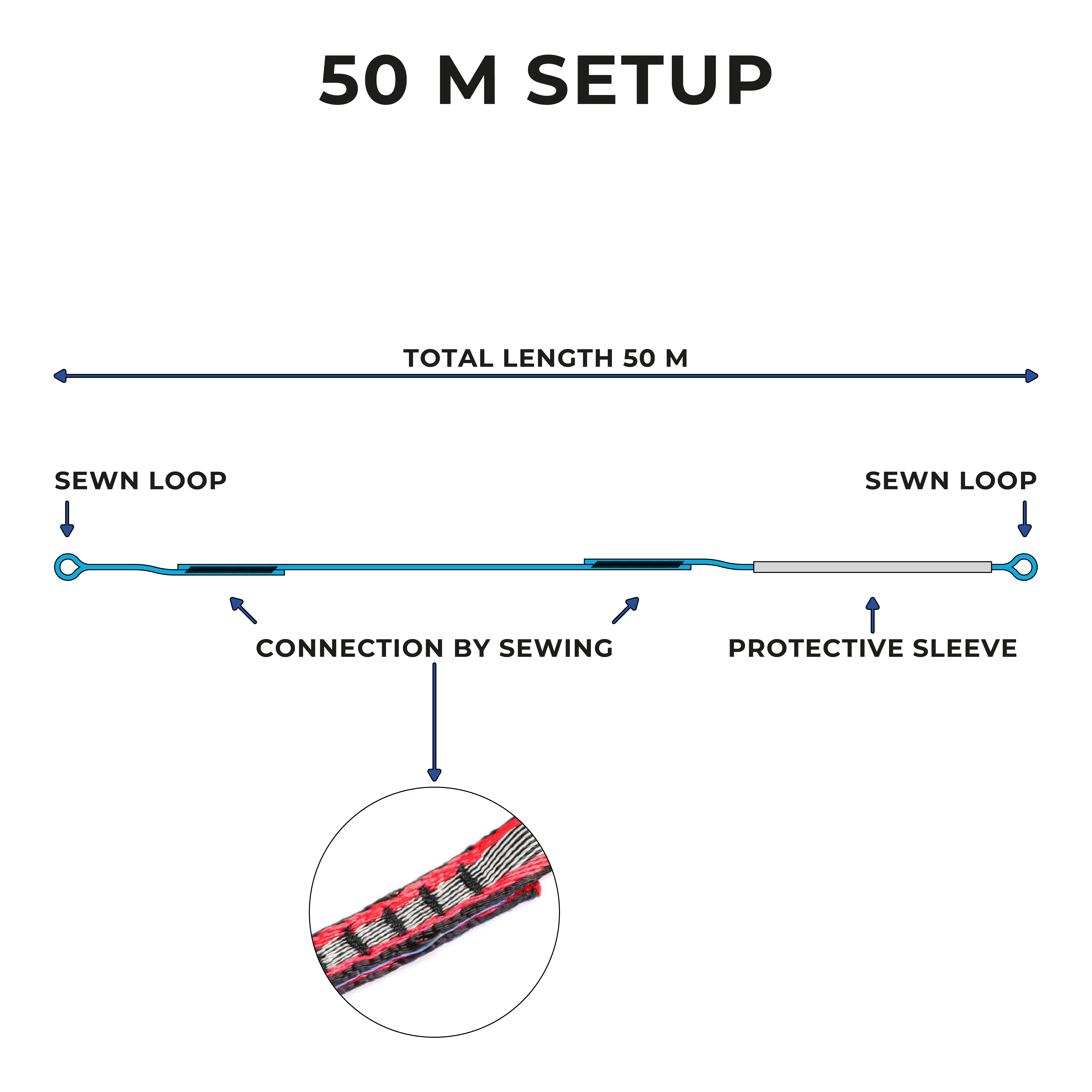 50-meter split of longline webbing, reduced width of 17 mm, with a maximum of 2 connection by sewing.