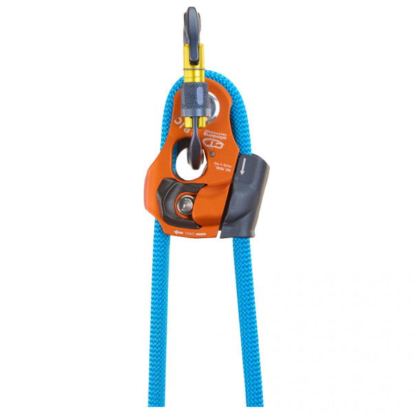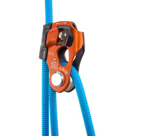 Multifunctional rope clamp with integrated pulley for rescue and rope access work. Robust, practical and intuitive, it has four different modes of operation: ascender, pulley, rope clamp/pulley or progress-capture hauling pulley.