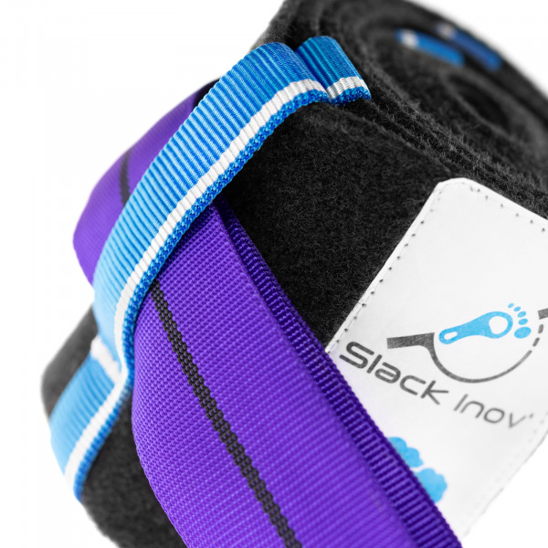 De plus, grâce à ses quatre bandes cousues verticales, tu peux supporter la slackline ou l'élingue pendant la phase de tension. Ainsi, tu n'as pas à te soucier de leur fixation.