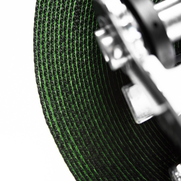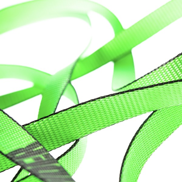 La sangle, a une trame très particulière, complètement différente d'une sangle d'arrimage ou d'une corde. Son tissu est spécialement conçu pour la slackline afin de faciliter l'apprentissage des principes de base de l'équilibre et du contrôle du corps sur la ligne.