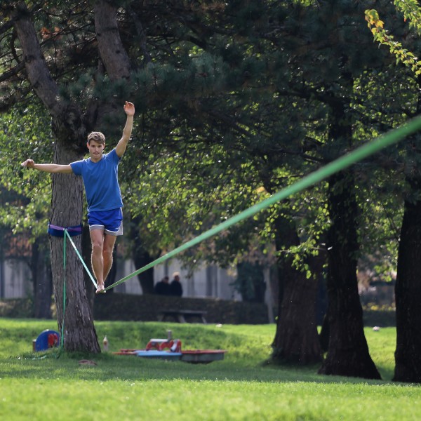 Le principe de cette discipline est très stimulant : marcher sur une "corde" tout en gardant l'équilibre le plus longtemps possible. Tous ceux qui ont vu cela dans un parc ou dans un film ont pensé : "Je me demande si je pourrais faire ça". La slackline présente de nombreux avantages, tant sur le plan physique que mental : d'une part, il s'agit d'une activité physique très saine et utile pour entraîner le corps et améliorer la stabilité du tronc ; d'autre part, elle améliore la concentration. Conseil d'expert Visites la page COMMUNAUTE de notre site web ou envoie-nous un email sur CONTACT et découvre tous les avantages que peuvent te procurer la slackline !