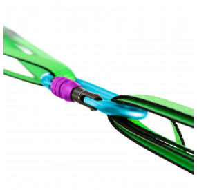 L'anneau LINELOCK léger et des MOUSQUETONS DE SECURITE en alu bloquent la sangle. En installant le système Primitive, la sangle glisse et s'enroule sans efforts autour de la surface brillante et lisse des mousquetons.