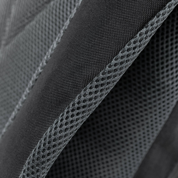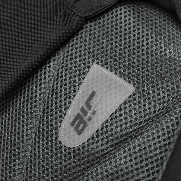 Lacci spalle imbottiti, fessura per cuffie MP3, porta borraccia, lacci frontali porta oggetti.